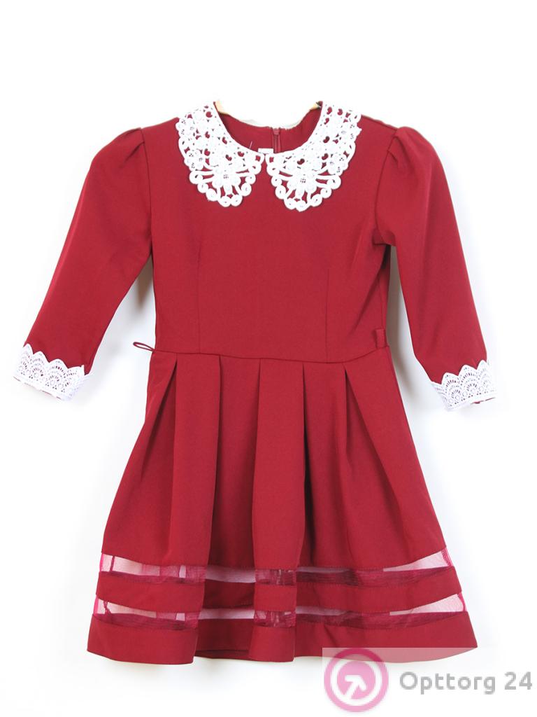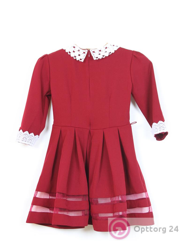 Сарафан школьный для девочки красный с воротом и манжетами. Классический.
