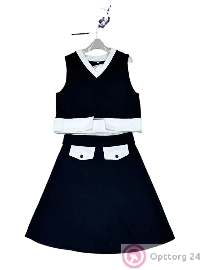 Костюм школьный для девочки с жилеткой чёрного цвета оптом