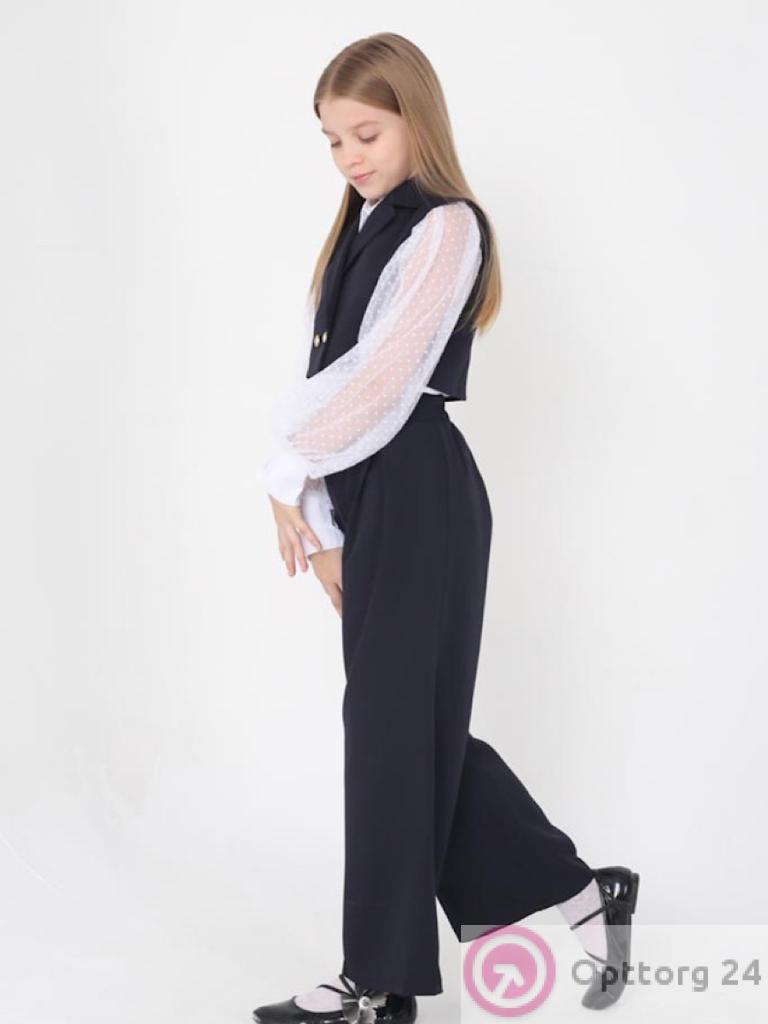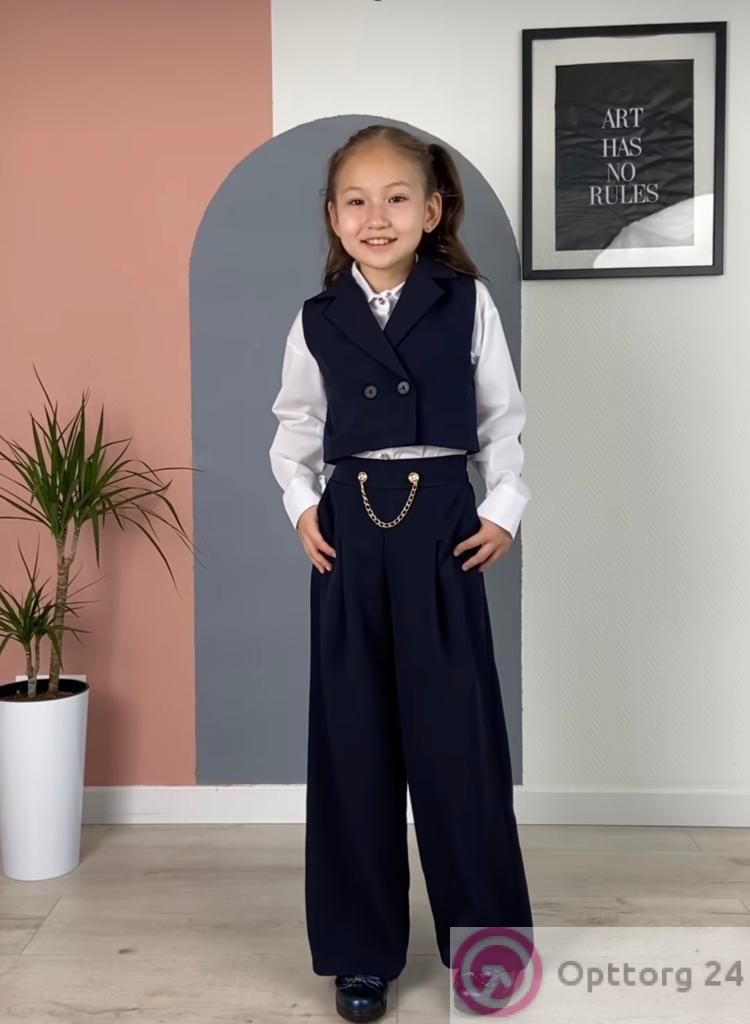 Костюм школьный для девочки с жилеткой и брюками синего цвета оптом