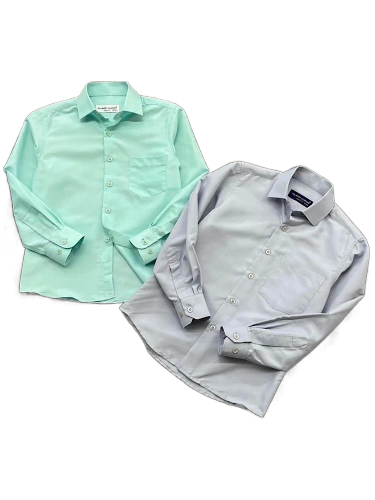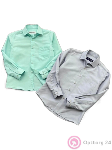 Рубашка для мальчика школьная. Отложной воротник. Застёгивается на пуговицы. Прямой крой. Длинный рукав. Классическая, манжеты на пуговицах.
