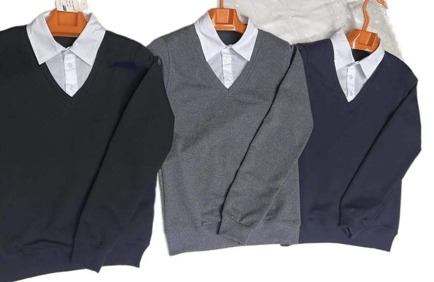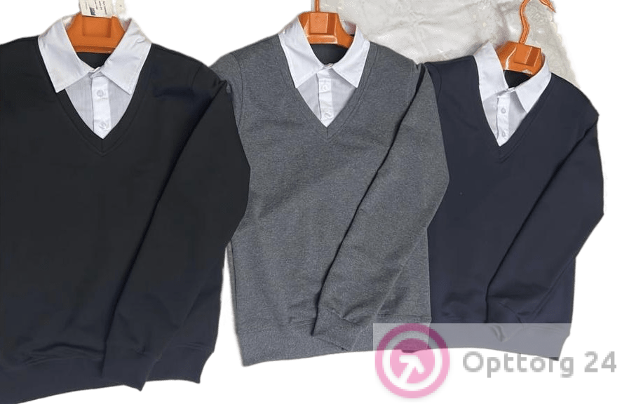 Рубашка с джемпером для мальчика школьная однотонная с длинным рукавом оптом
