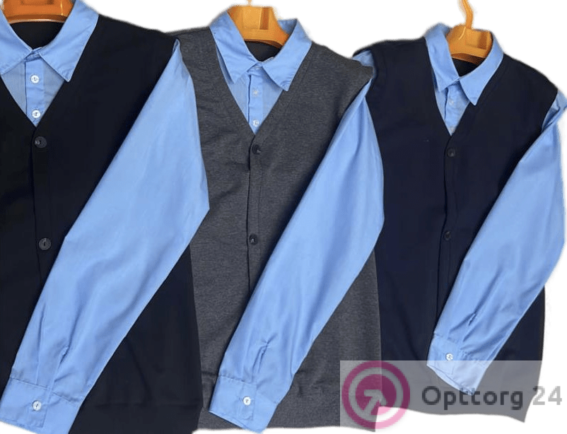 Рубашка с жилетом для мальчика школьная с пуговицами оптом