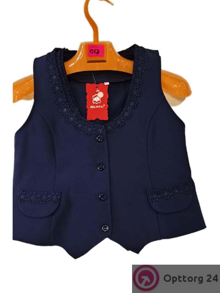 Жилетка для девочки школьная на пуговицах с кружевом синего цвета оптом