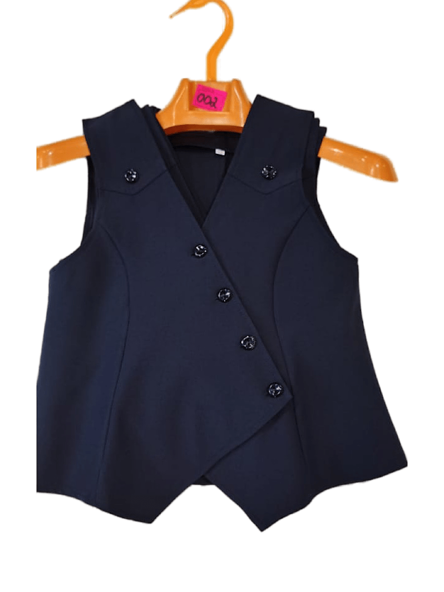 Жилетка для девочки школьная. Оригинальный крой, украшена пуговицами на плечах. На пуговицах, приталенная.