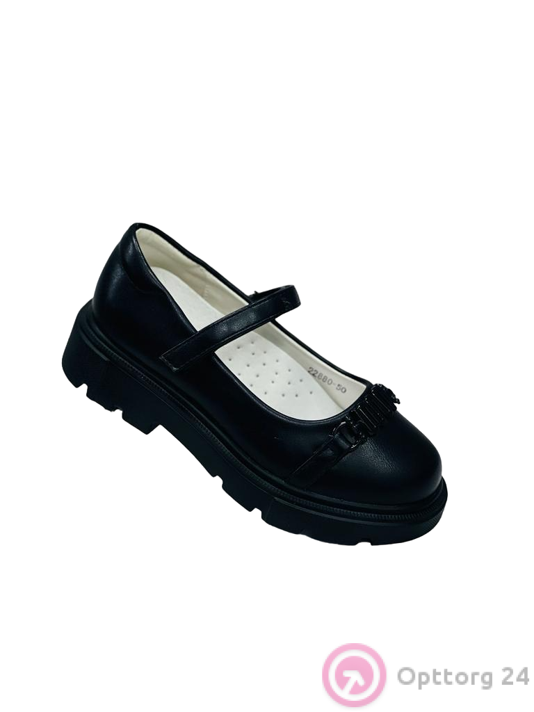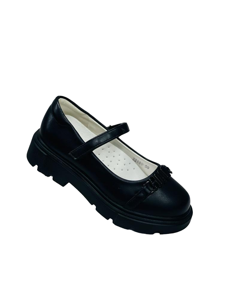 Современные повседневные туфли для девочки. Модель представлена в черном цвете. Удобная, износостойкая подошва даст комфорт при ношении. Липучка ускорит и облегчит процесс обувания.