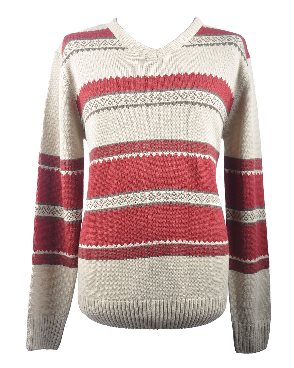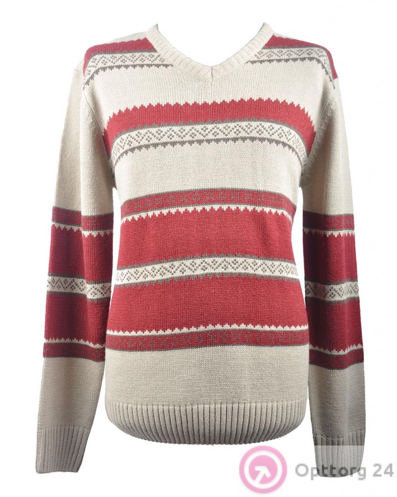 Джемпер мужской бежевый в красную полоску оптом