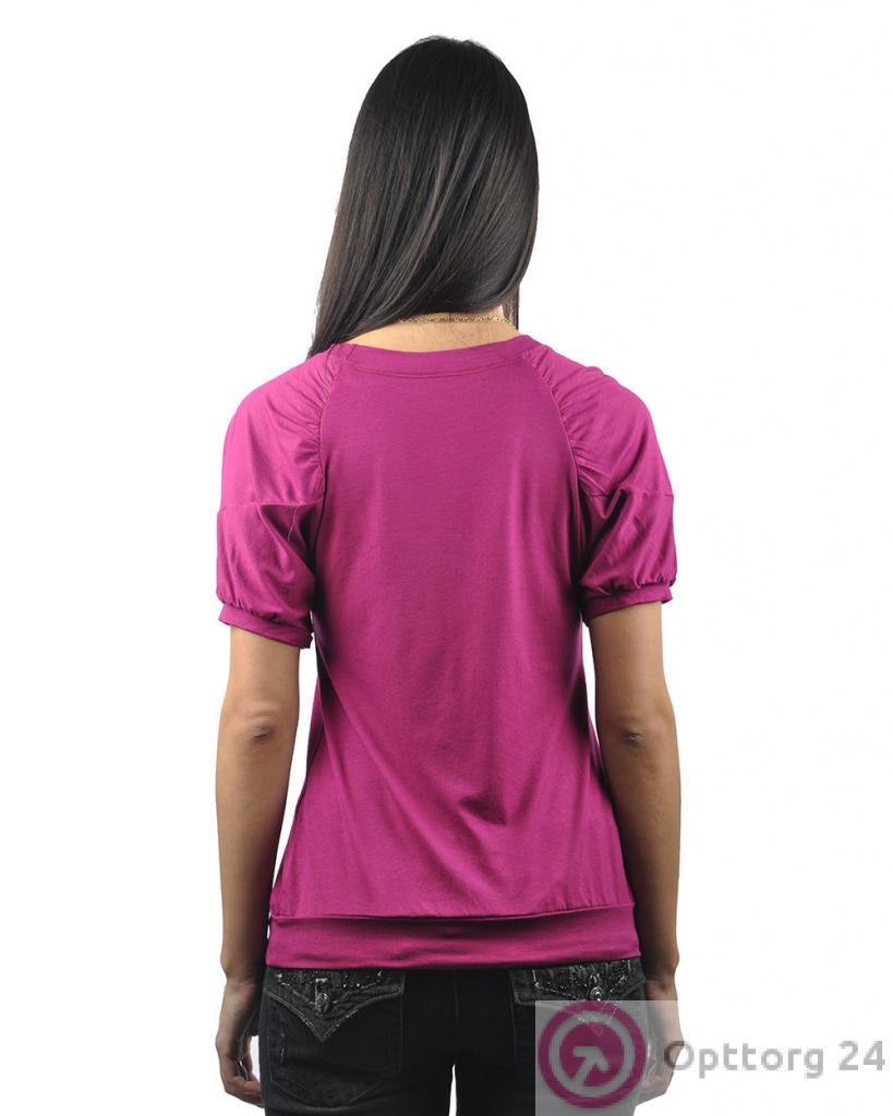 Футболка женская малинового цвета с резинкой снизу оптом