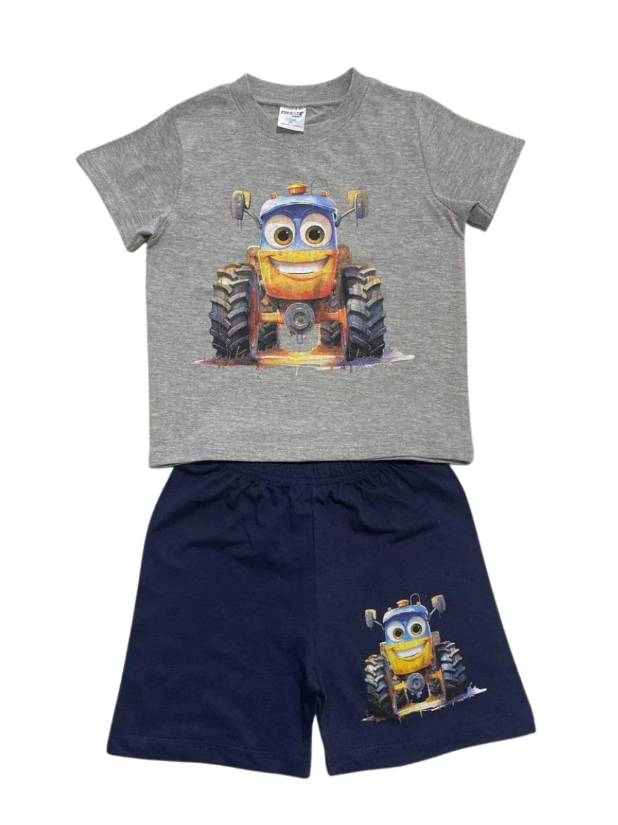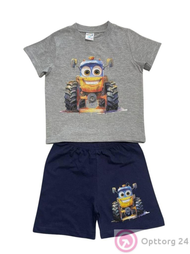 Костюм детский из хлопка футболка и шорты «Трактор» оптом