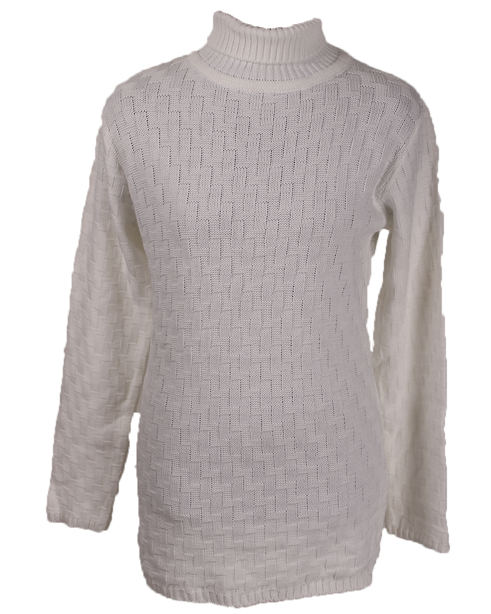 Простенькая, но в то же время приятная и стильная кофта белого цвета. Удлинённый низ не даст замёрзнуть в самую пасморную погоду. Длинный воротних сохранит ваше горло в тепле.