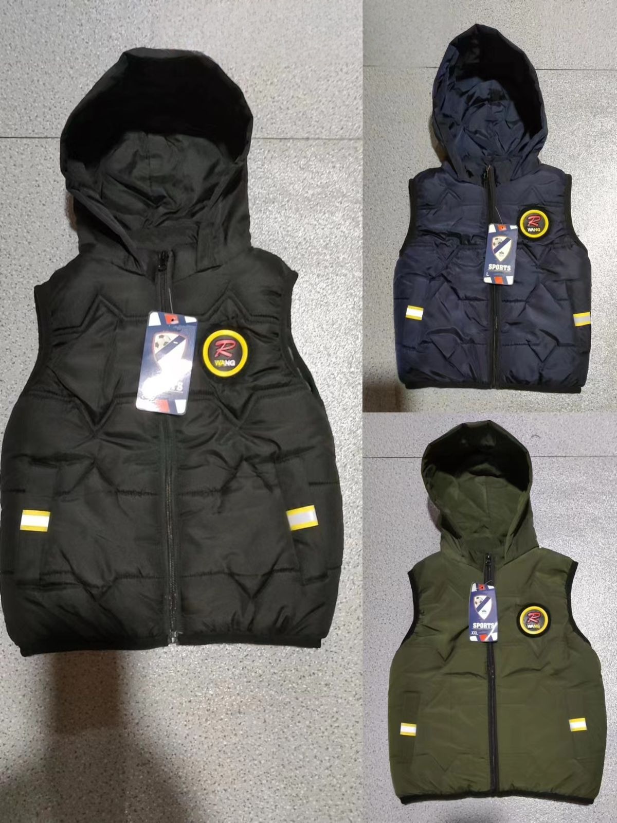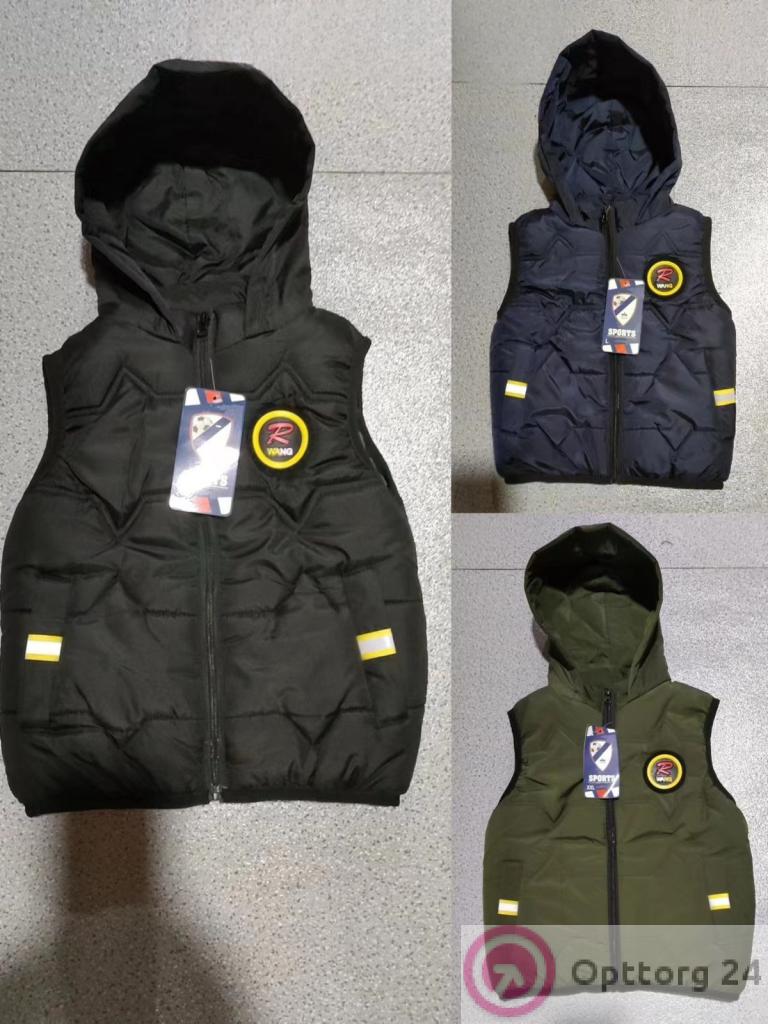 Жилет на синтепоне стеганый детский . Застежка на молнии. Есть капюшон и два кармана. С декоративными элементами. Низ жилета на резинке.