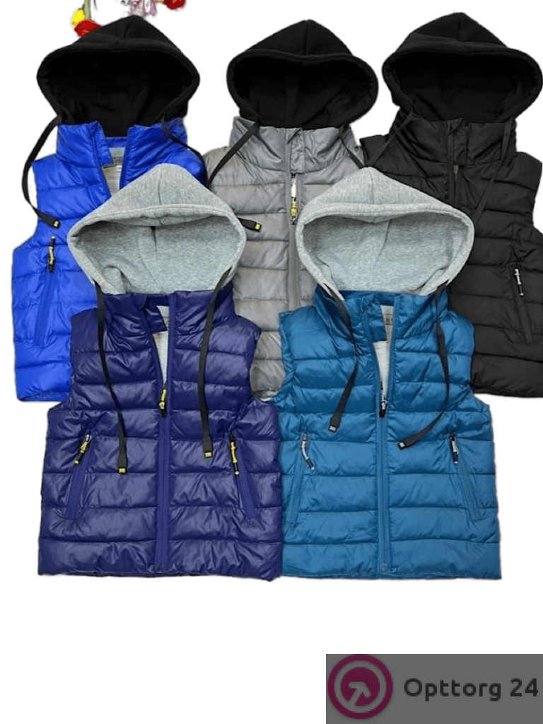 Жилет детский на синтепоне с карманами и капюшоном оптом