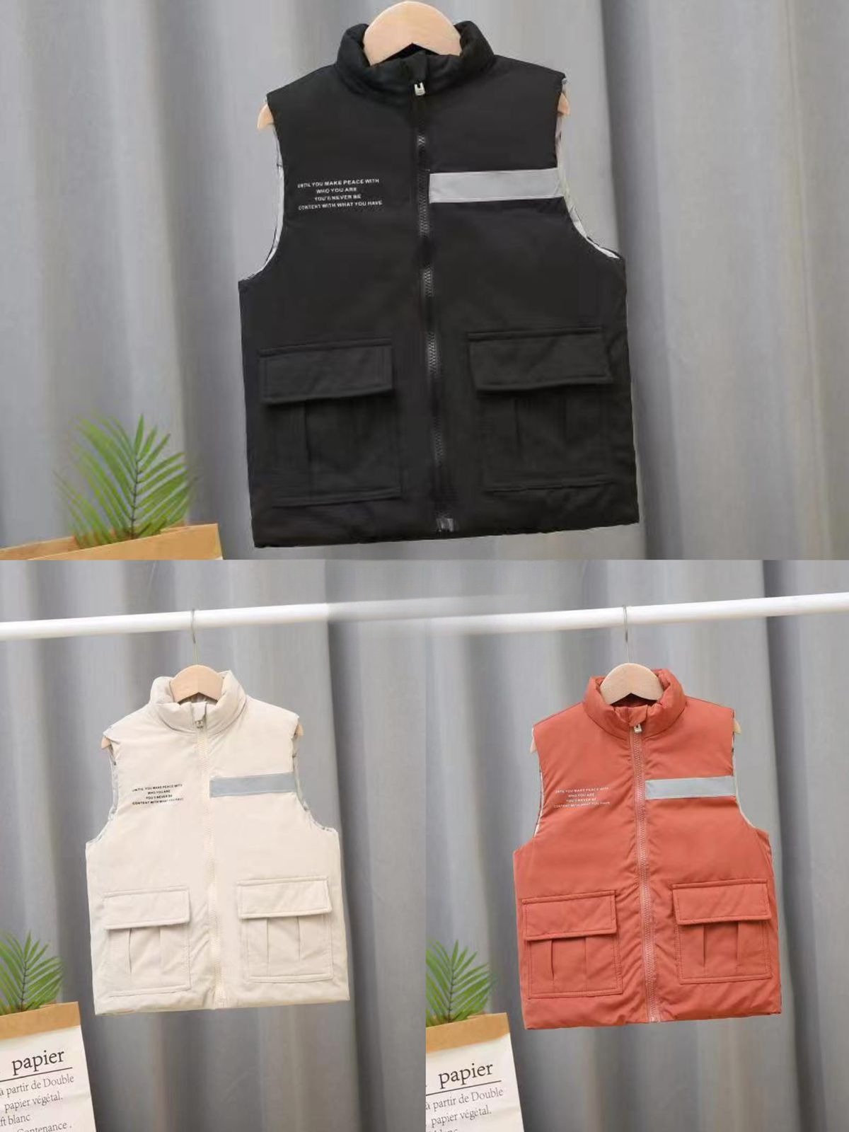 Жилет детский на синтепоне. Застежка на молнии. Два накладных кармана. С отражающей лентой