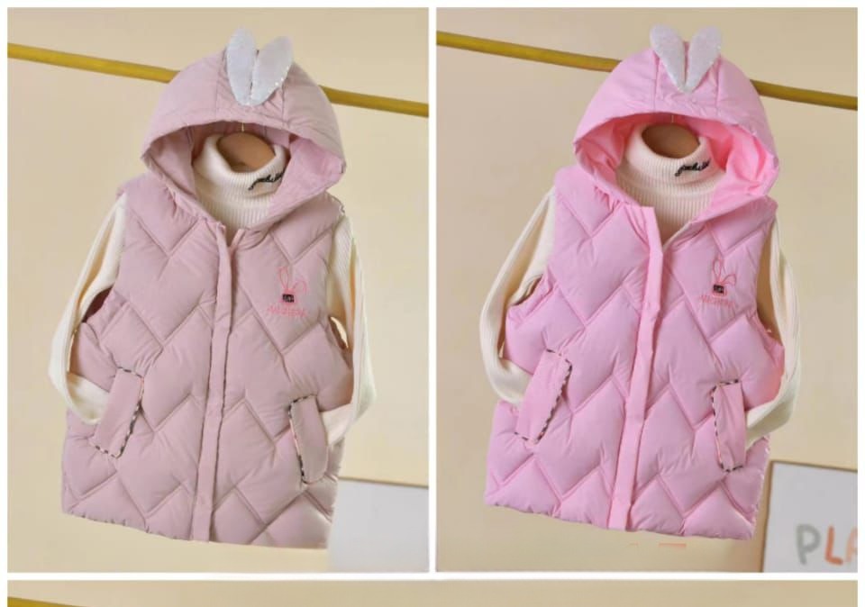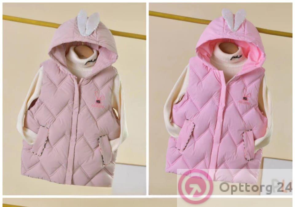 Жилет подростковый на синтепоне стеганый. Застежка на молнии. Есть капюшон с ушками и два кармана. Прямого кроя.