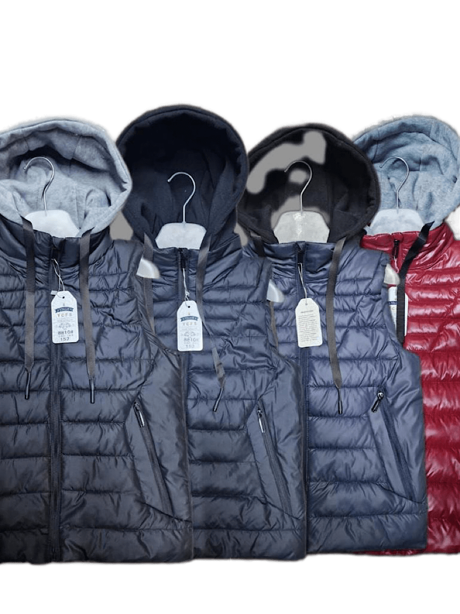 Жилет подростковый на синтепоне. Есть карманы по бокам. Капюшон выполнен из трикотажа и затягивается шнурком. Разнообразные цвета.