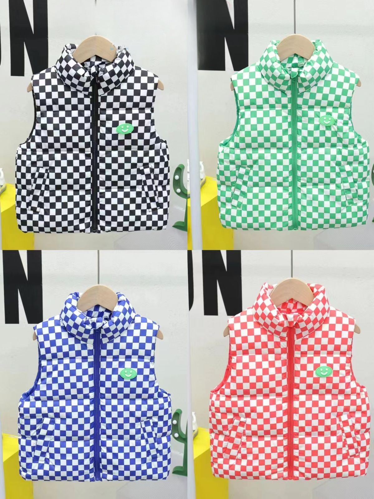 Жилет детский на синтепоне. Застежка на молнии. В клетку. Два кармана.