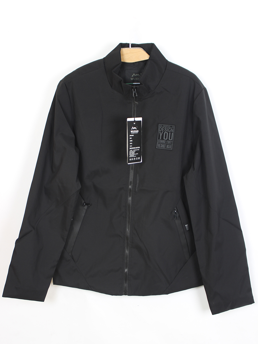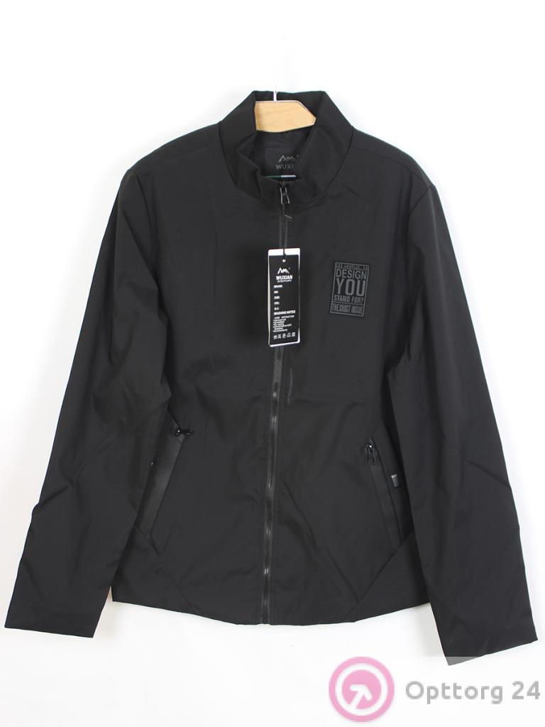 Ветровка мужская на молнии черная с накладкой прямого кроя оптом