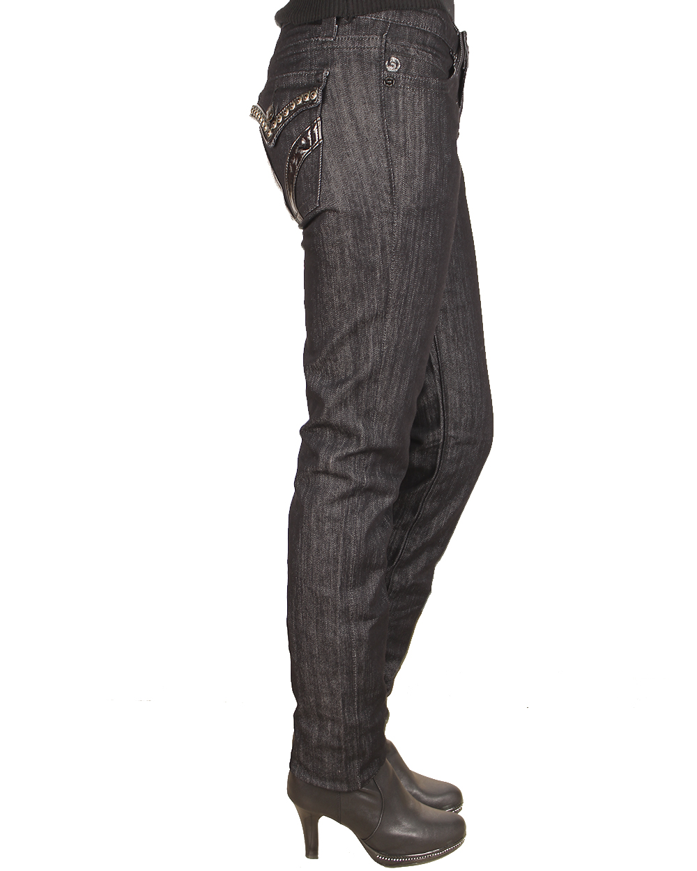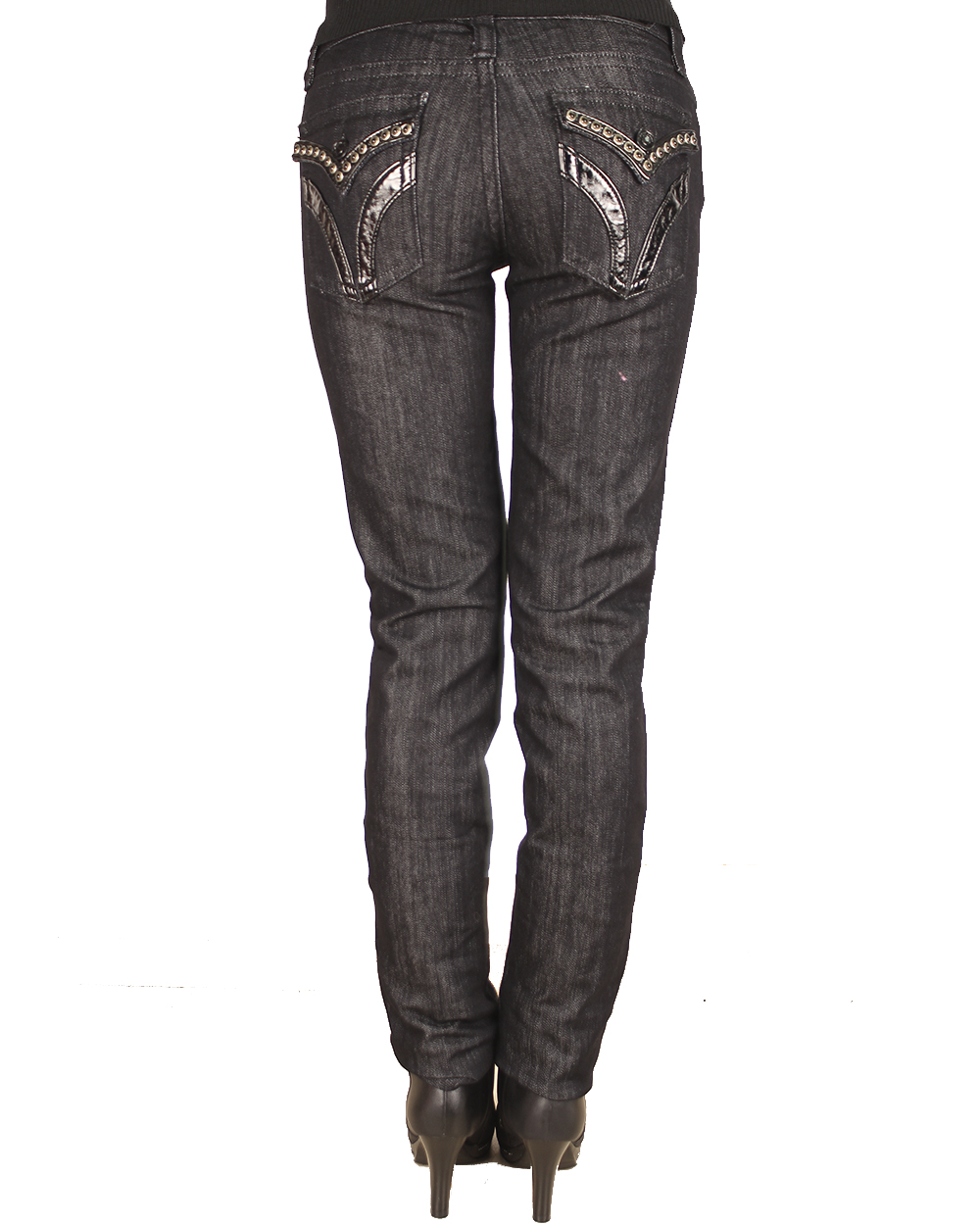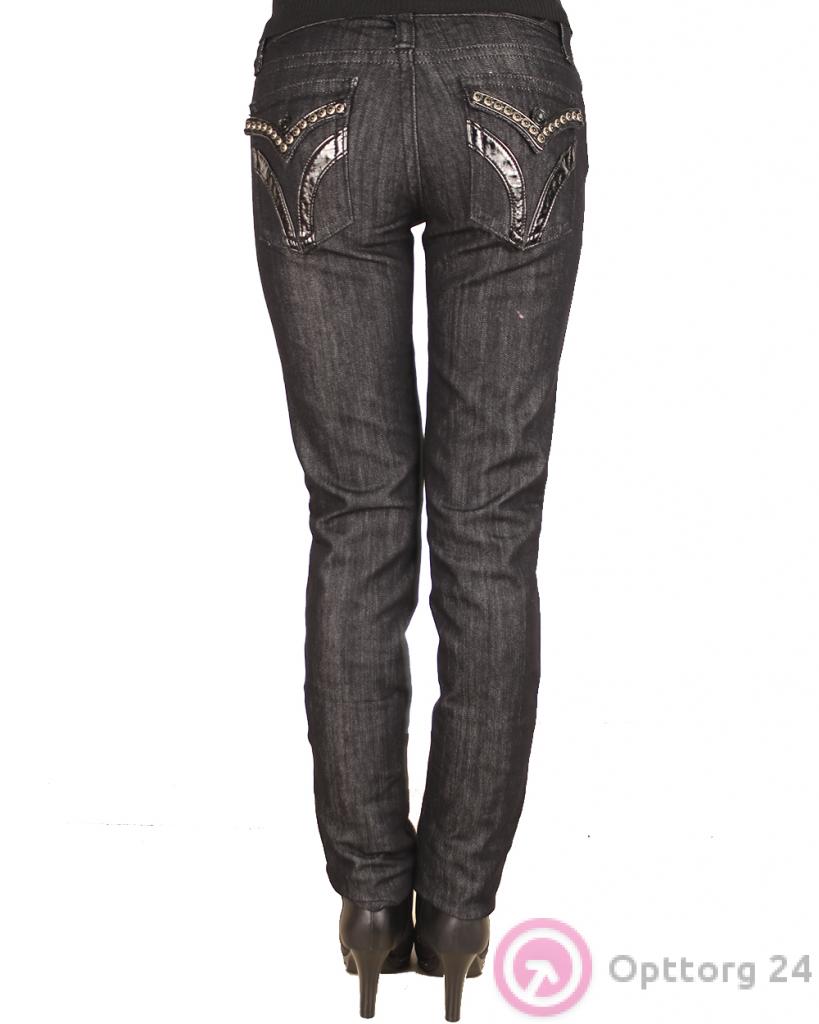 Женские джинсы черного цвета с рисунком на задних карманах. оптом