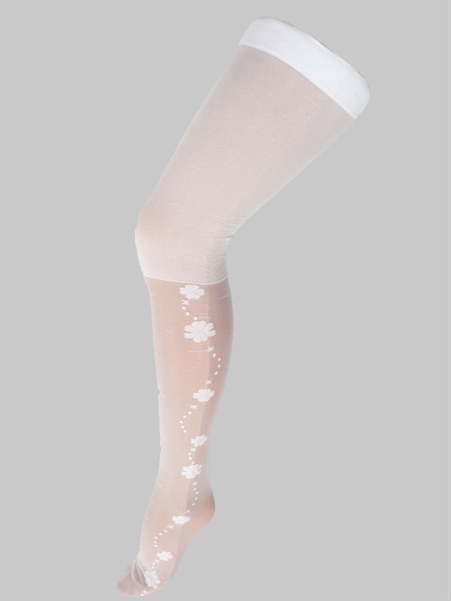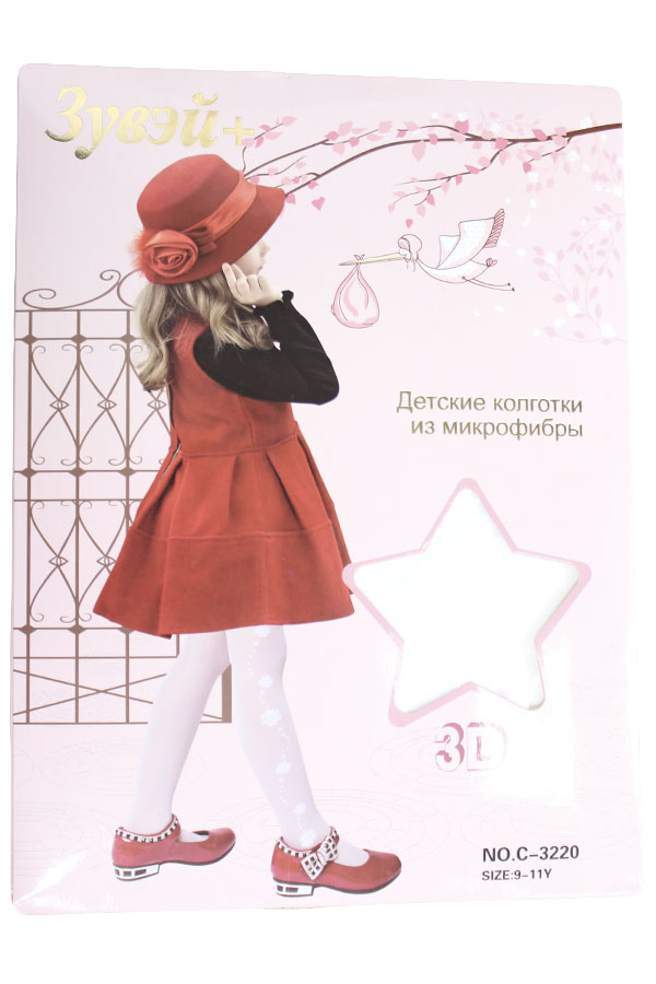 Детские колготки из микрофибры с рисунком в виде цветков по бокам изделия.