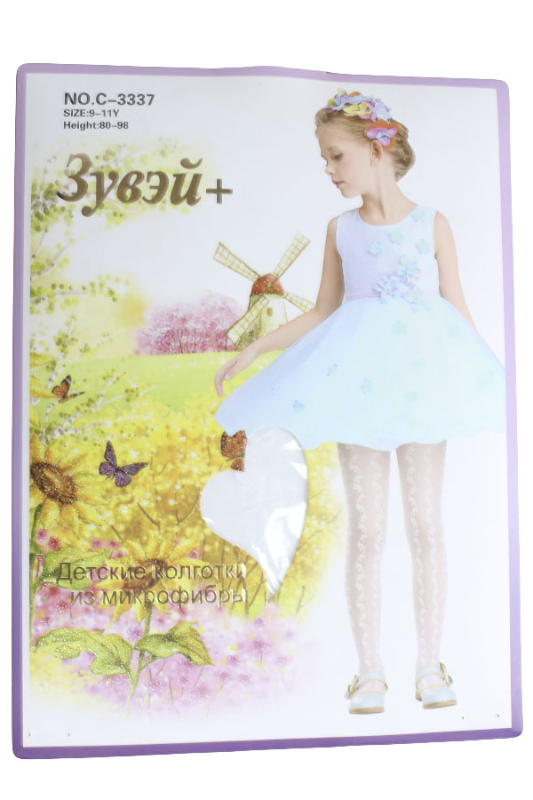 Колготы детские белого цвета с рисунком на нижней части изделия. оптом