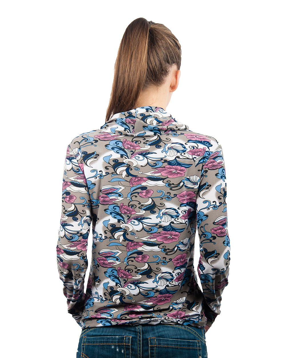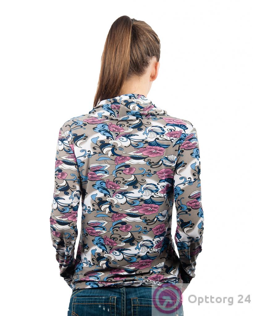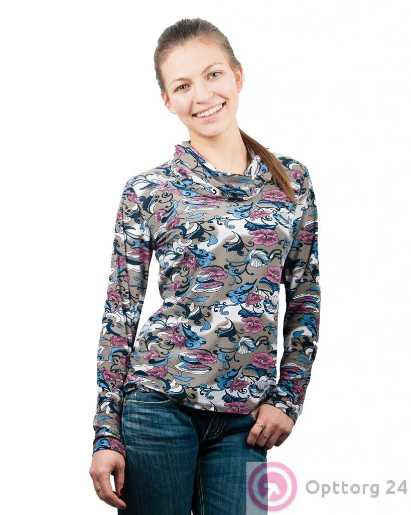 Джемпер женский с воротом-хомутом и цветами серо-голубой оптом