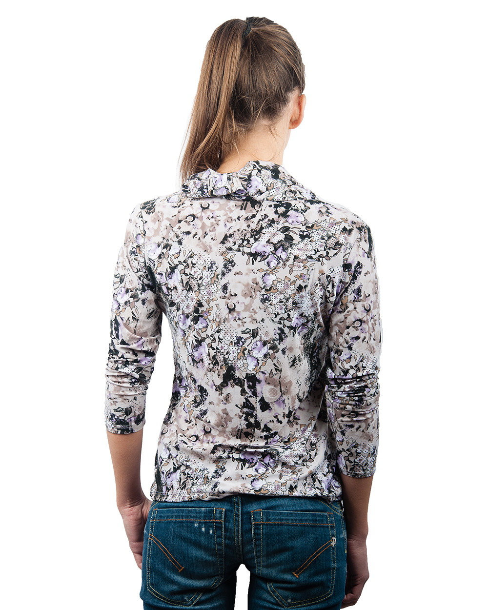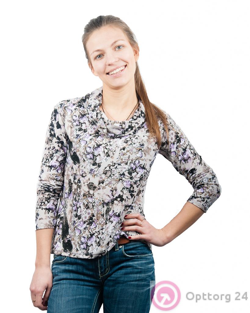 Джемпер женский сиренево-черный с абстрактным принтом оптом