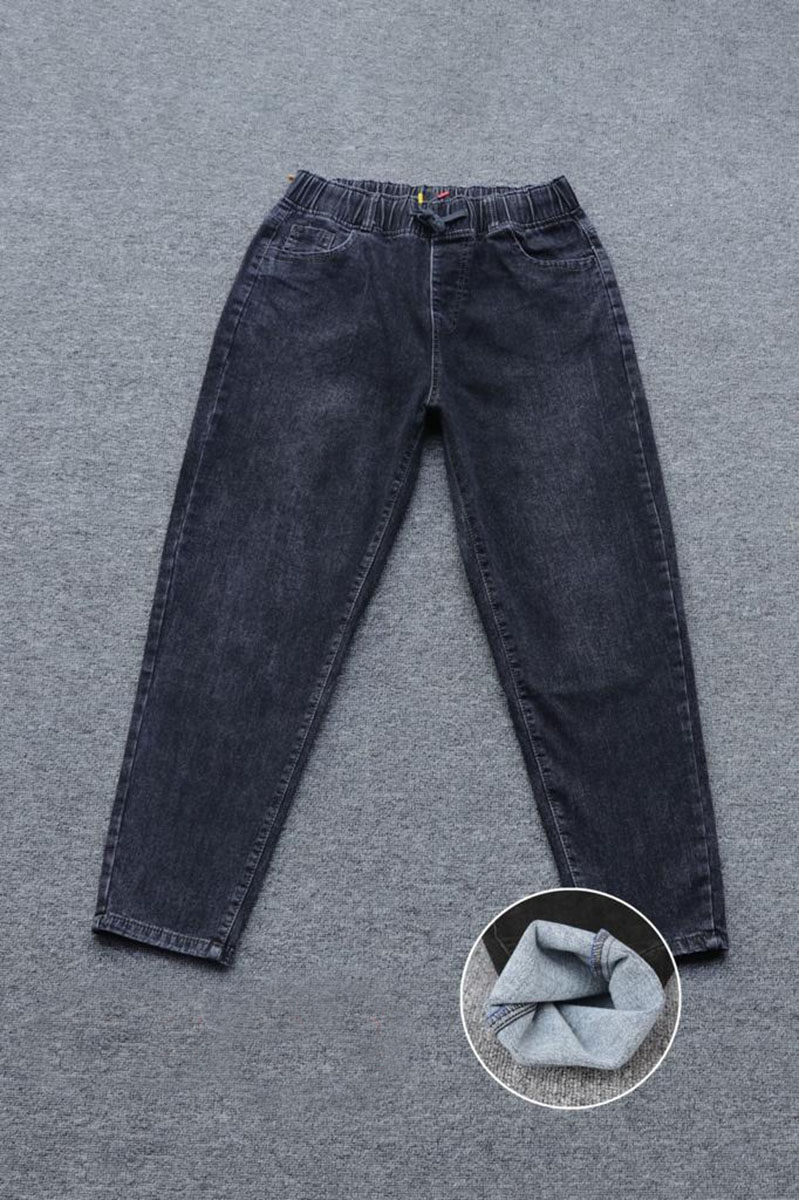 Описание: Джинсы женские с начесом на резинке темно-серого цвета с небольшими потертостями. Зауженные к низу. Декорированы шнурком на талии. Есть карманы.