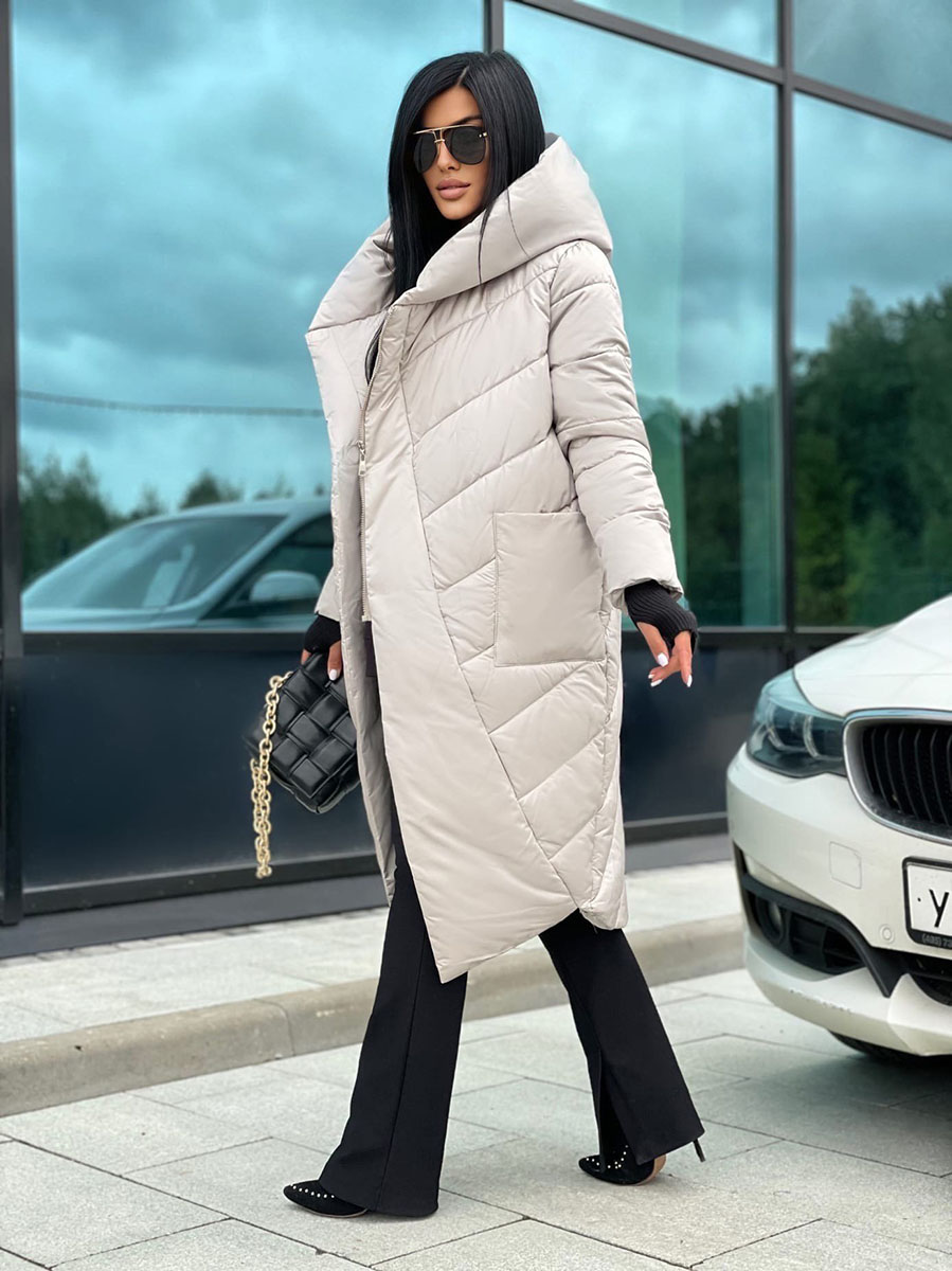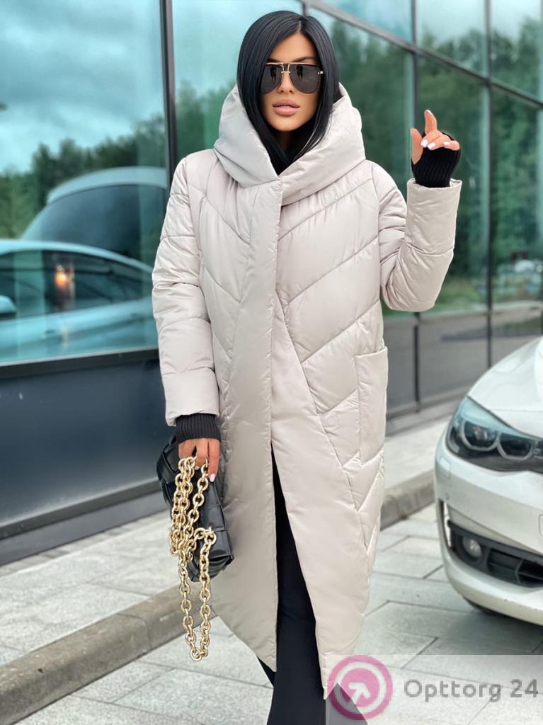 Пальто зимнее женское оригинальное цвет молочный оптом
