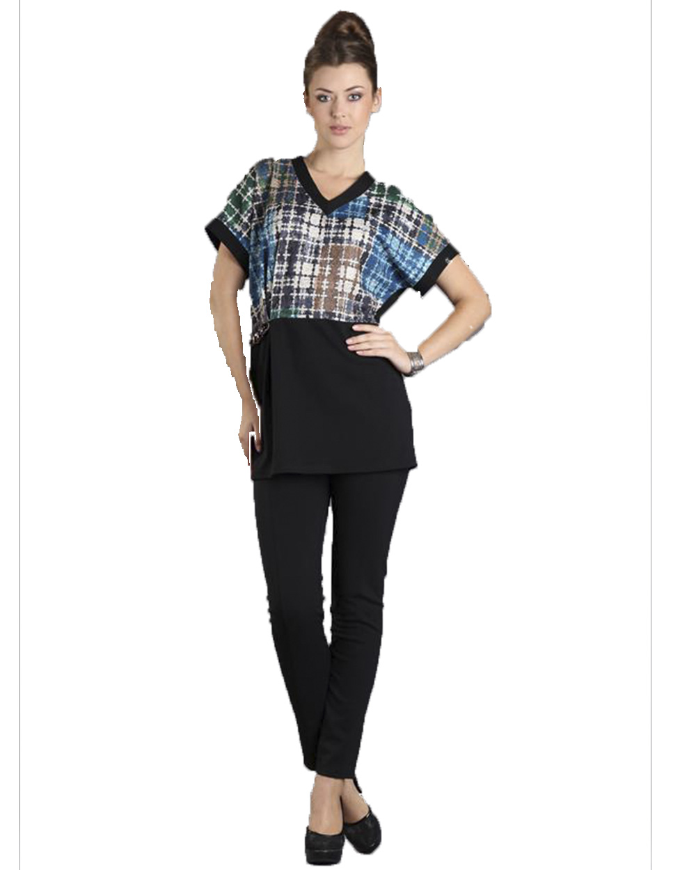 Разноцветная туника с коротким рукавом. Хорошо сочитается с брюками или легинцами.