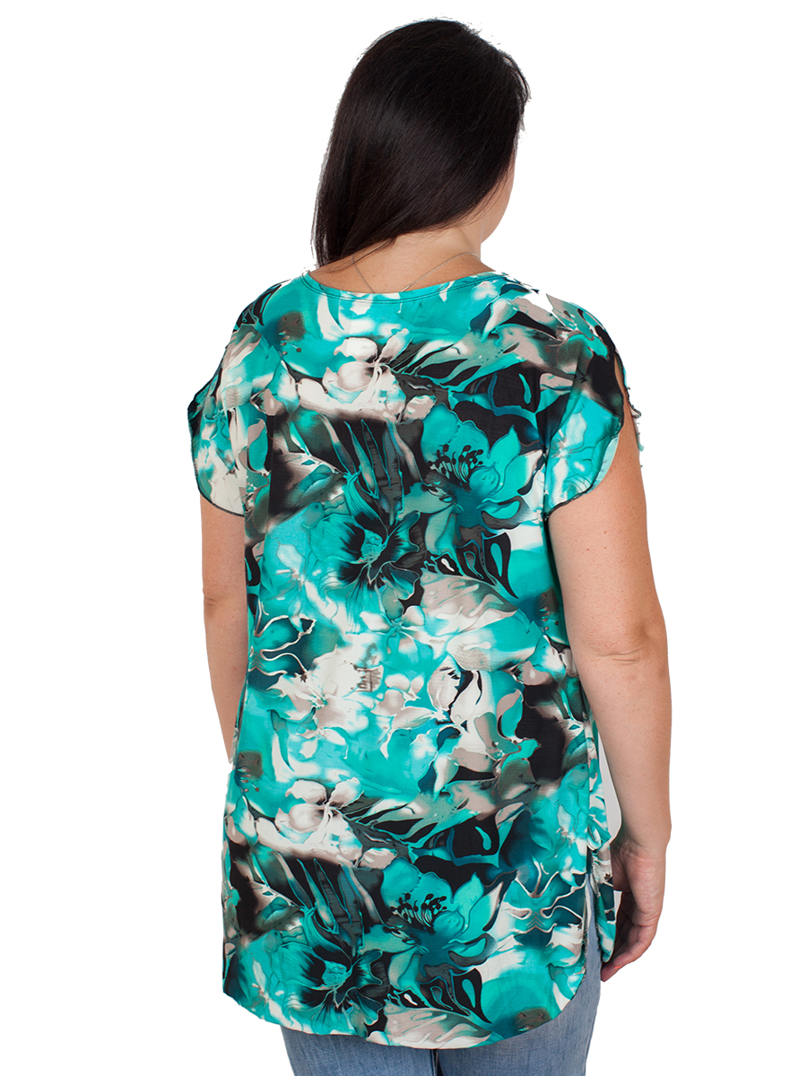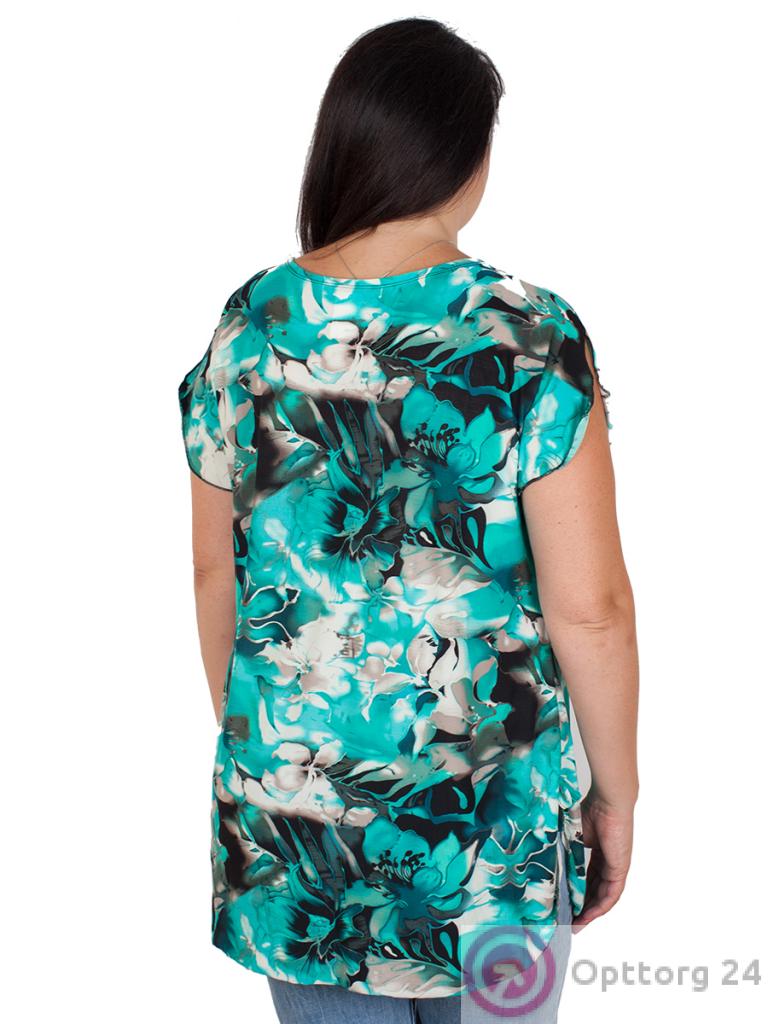 Цвет черный с голубым. Туника женская с цветочным принтом на завязках.Рукав короткий.