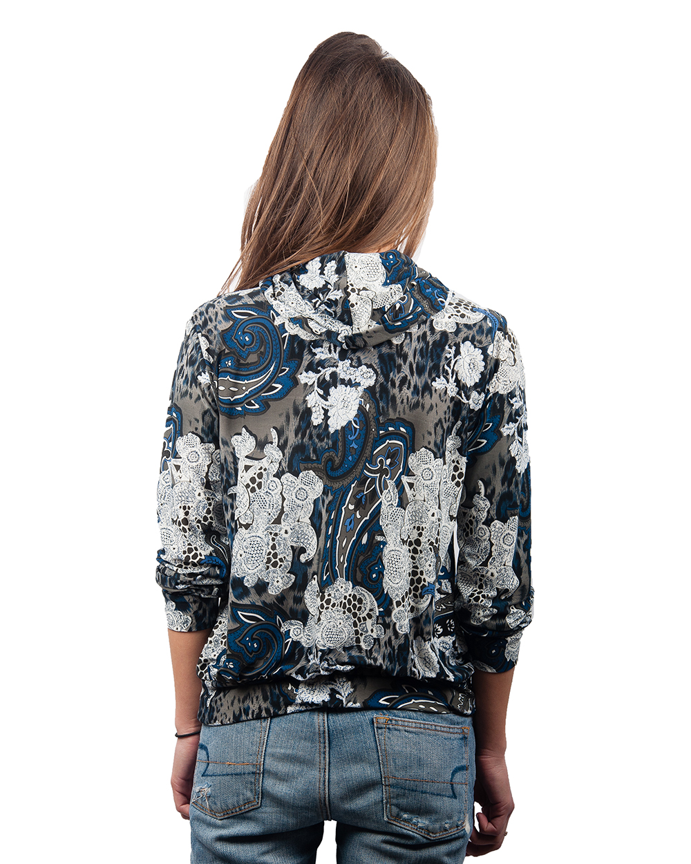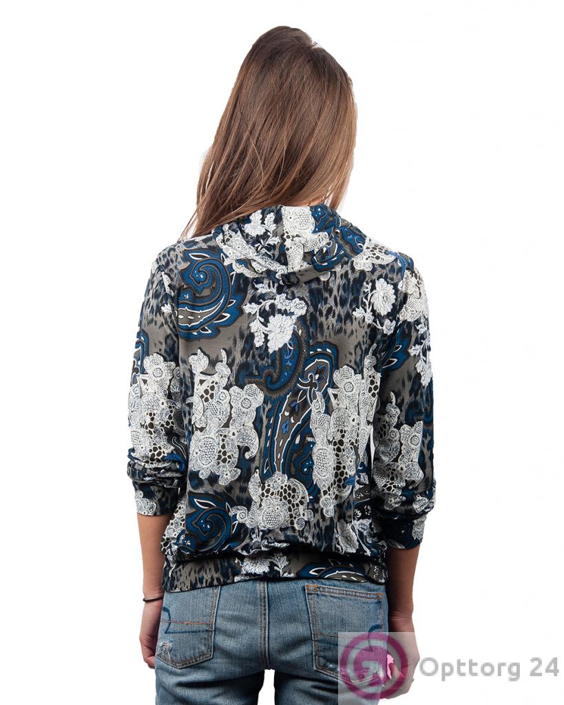 Водолазка женская серо-синяя с белым узором и резинкой снизу оптом