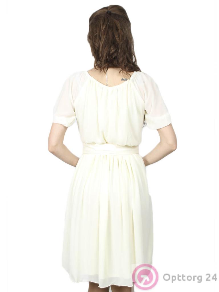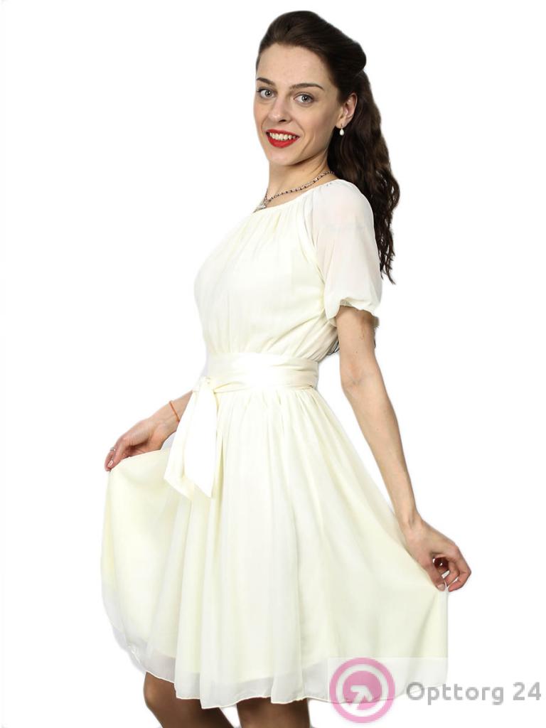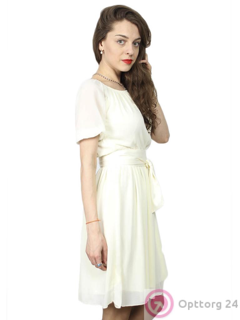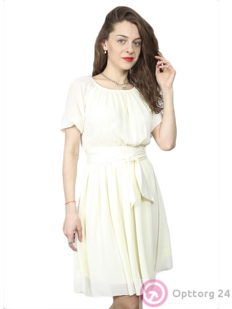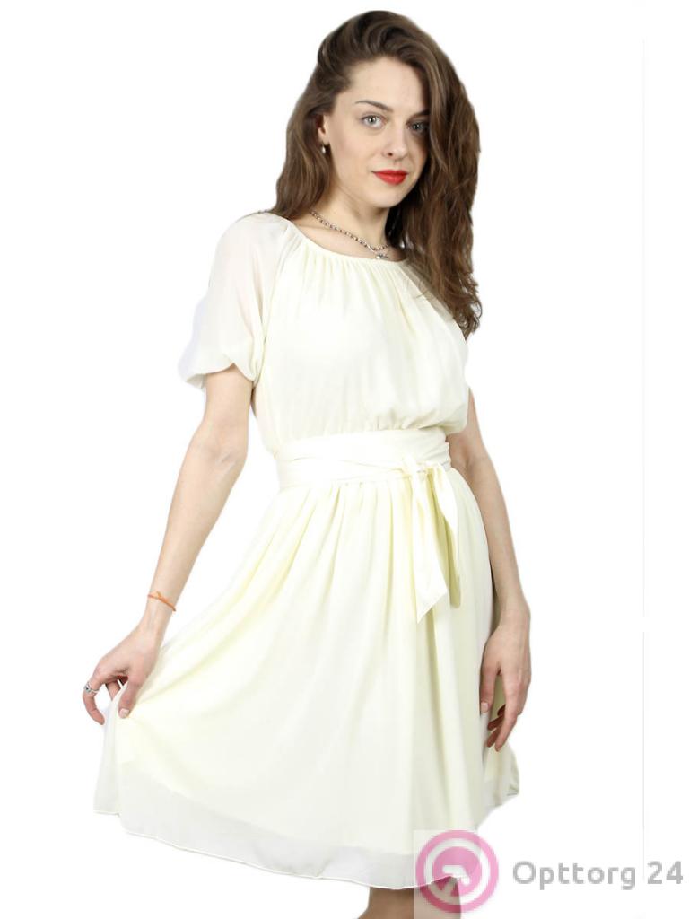 Женское платье бежевого цвета с поясом оптом
