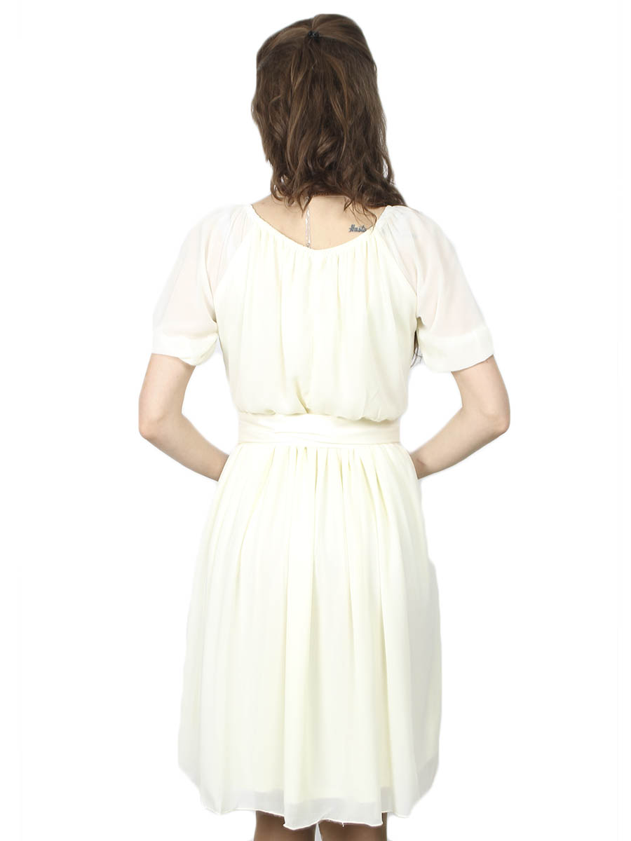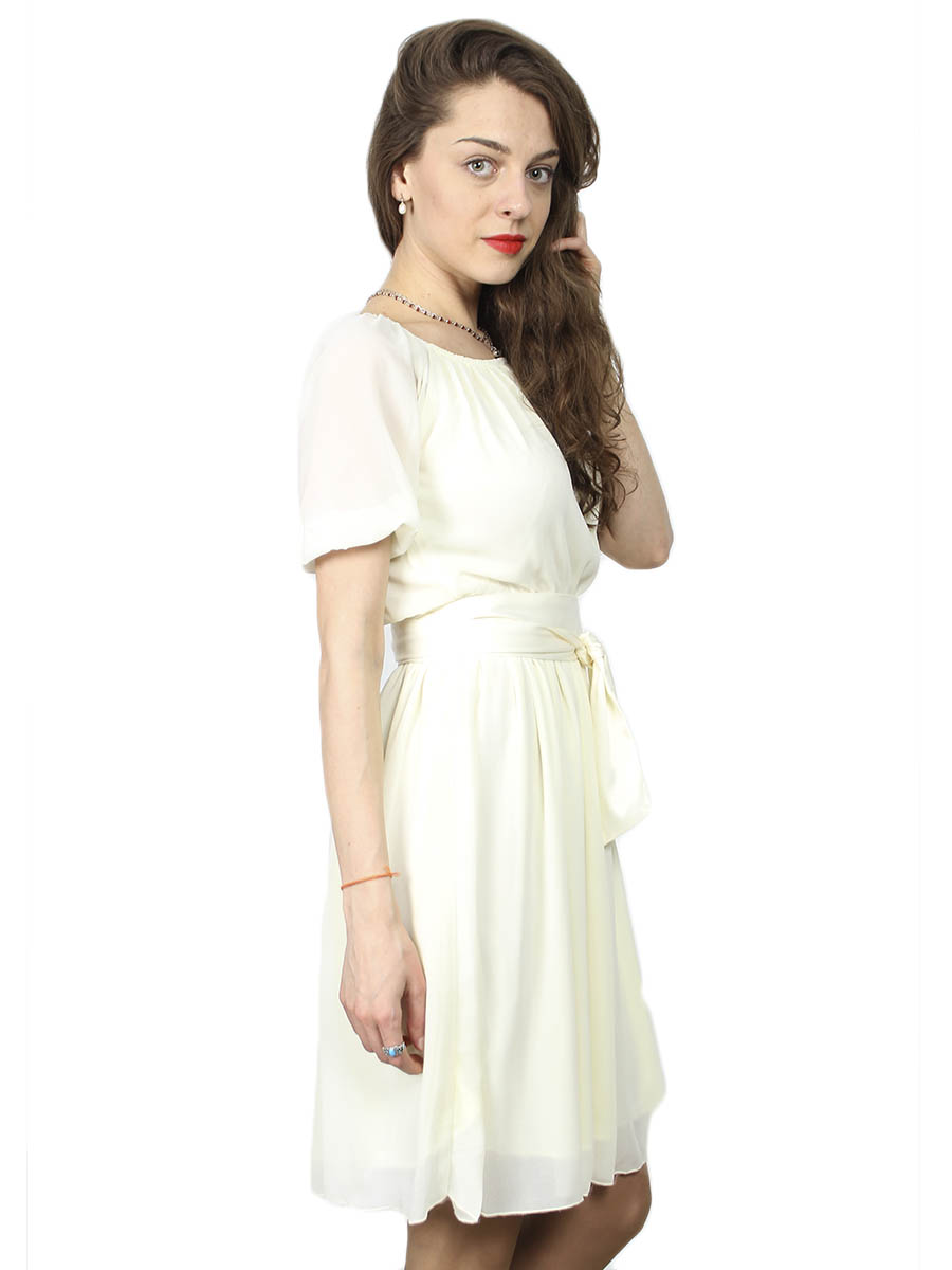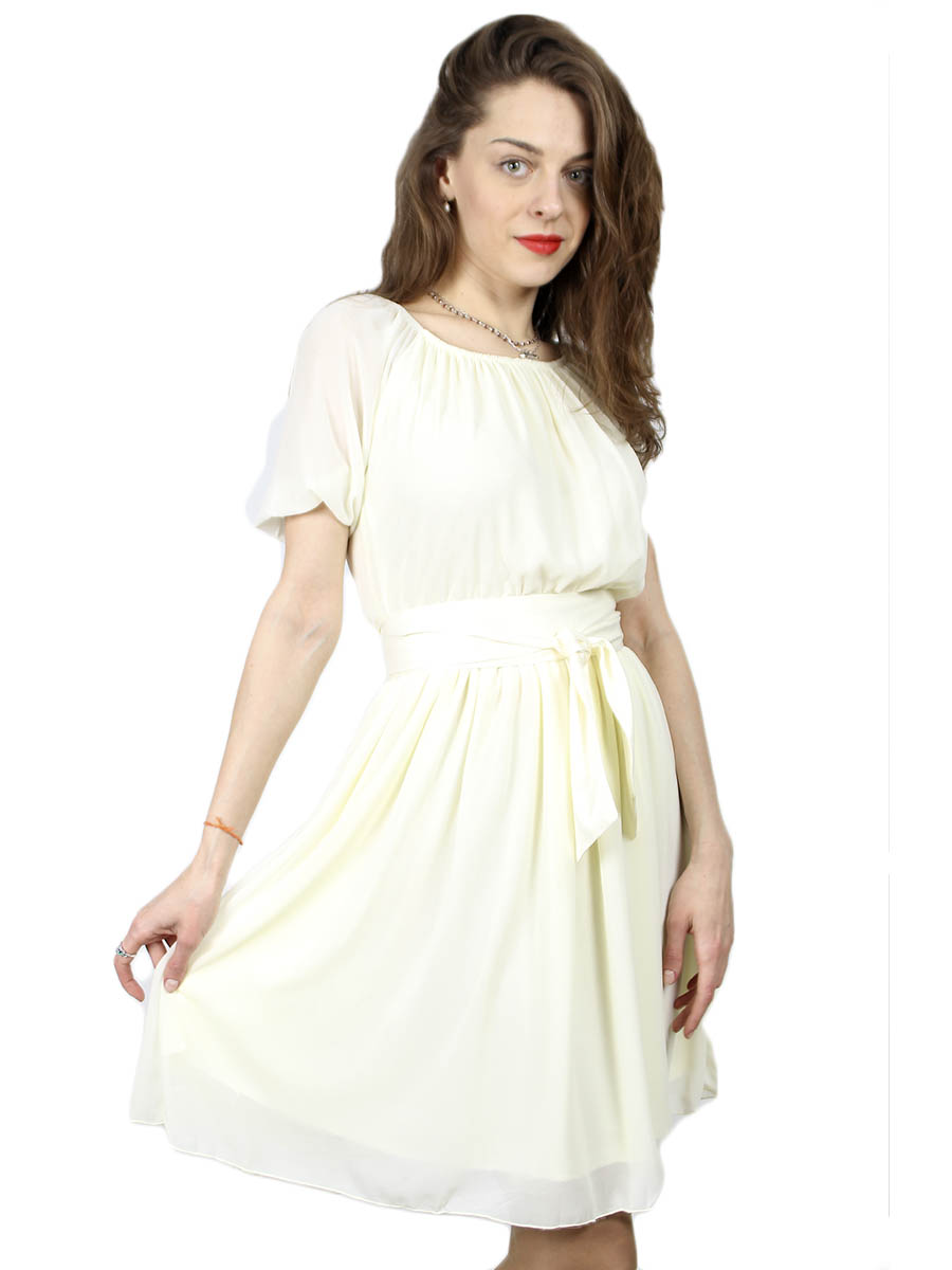 Женское платье бежевого цвета с поясом оптом