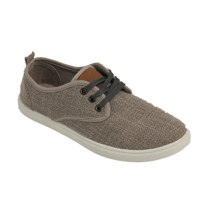 Кеды из плотного текстиля бежевого цвета. Модель застегивается на шнуровку. Язычок украшен изображением лейбла.