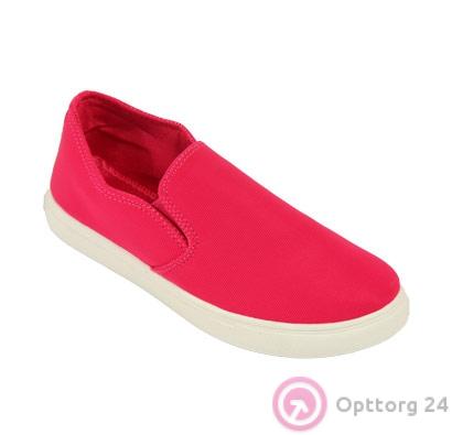 Однотонные женские кеды розового цвета. Модель изготовлена из текстиля, подошва - гибкая легкая резина. Сверху по краях есть эластичная резинка.