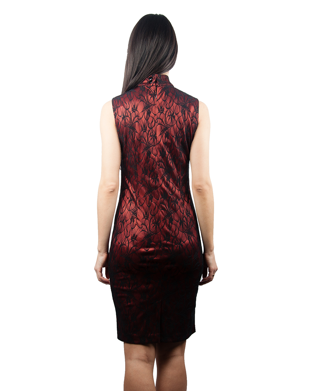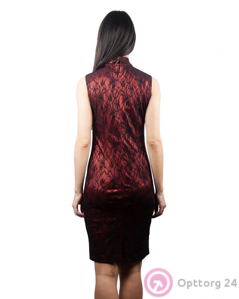Платье женское черно-красное кружевное с высоким горлом оптом