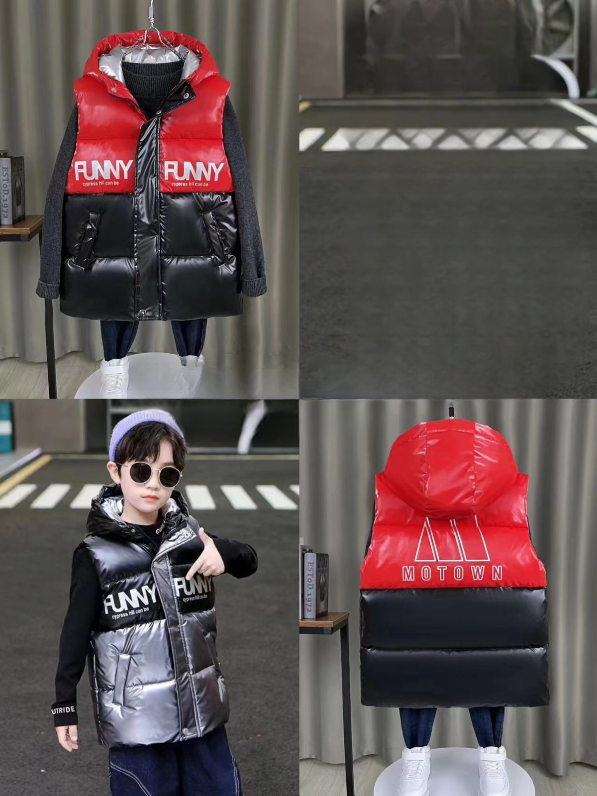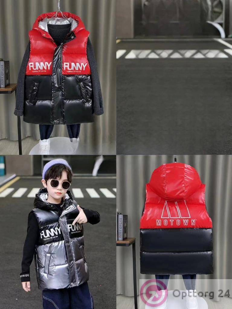 Жилет подростковый на синтепоне двухцветный. Застежка на молнии. Два кармана по бокам. Есть капюшон, С принтоми.
